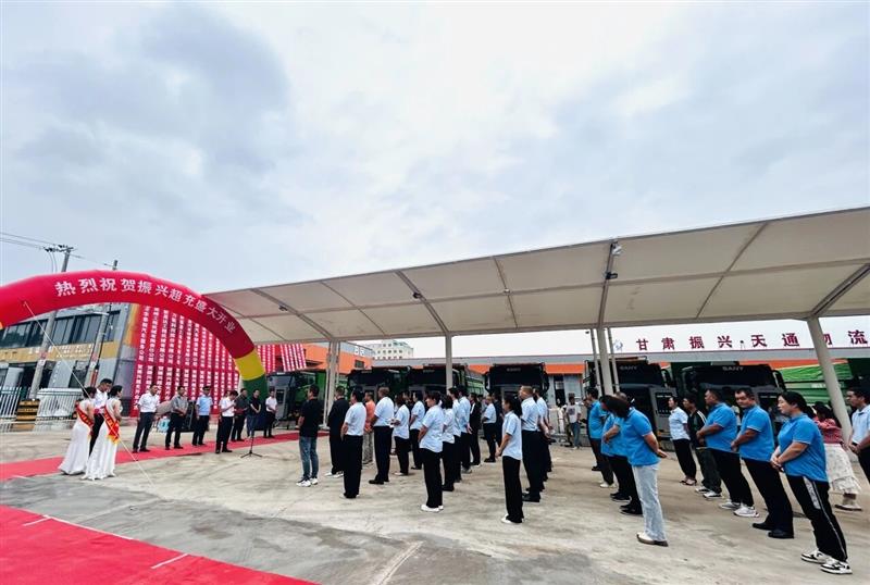 平凉市崆峒区交通运输局党组成员、副局长赵健,平凉市道路运输管理局安全应急科科长杨波,平凉市交通运输综合行政执法队四中队队长刘尧,浙江力氪科技股份有限公司刘晓亮,平凉新福渣土运输有限公司经理苏伟一行出席了今天的仪式;甘肃振兴集团总经理郑虎、常务副总经理郑龙,振兴超充新能源充电站站长石磊及合作伙伴、媒体代表共计60余人共同见证了这一里程碑时刻。