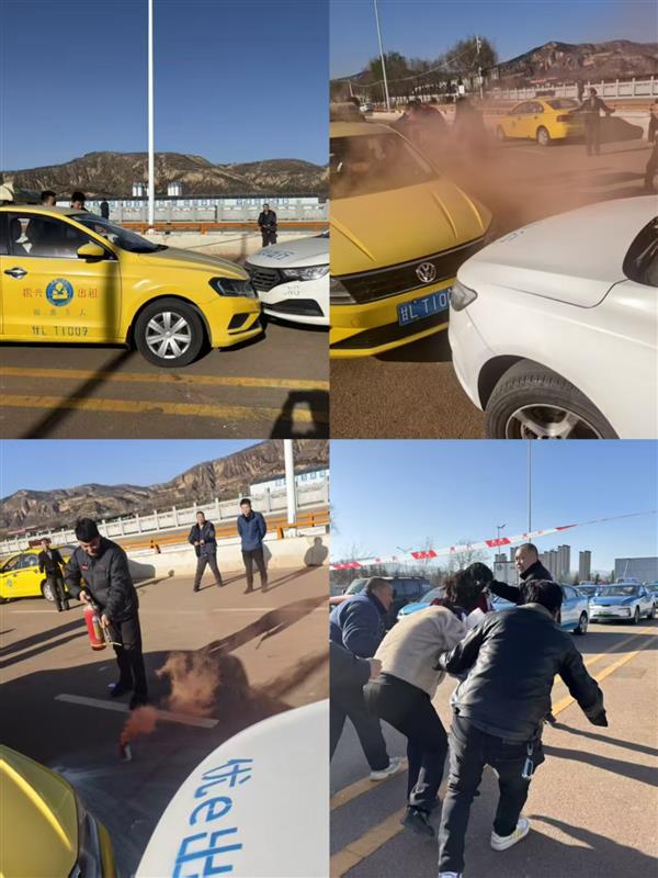 为了应对秋冬季极端天气下的行车风险,2025年11月24日下午,平凉振兴出租联合延安创威平凉分公司开展了周回场检查暨“雨雪天气车辆碰撞起火应急救援处置”综合演练——从“火情-报警-自救-疏散”的驾驶员初处置,到多部门协同的“3分钟响应、10分钟灭火”,把“应急”练成“本能”,是我们对安全的承诺。